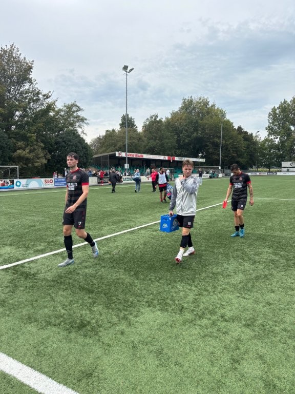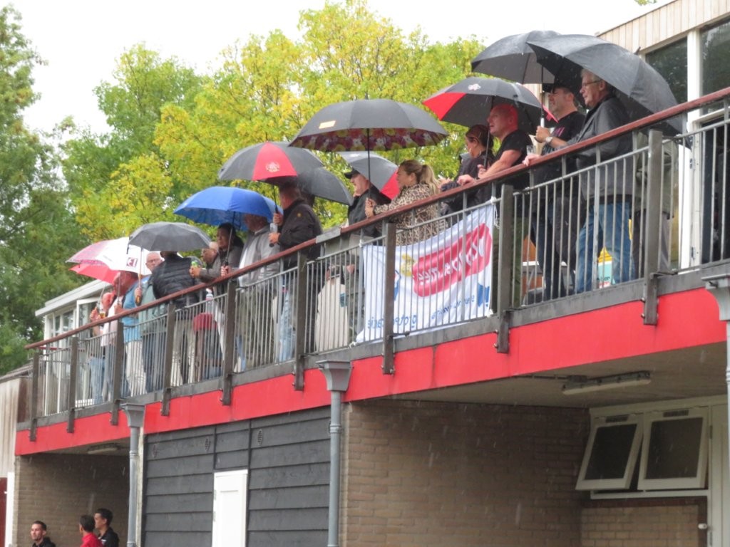 Voor rust regende het pijpenstelen, en het was opmerkelijk dat Jeffrey Monster en Patrick Stolk in witte EBOH polo naast de overdekte bank in de regen zaten: “We zijn geen homo’s en als mijn jongens in de regen spelen, zetten we geen grote paraplu op, we zijn één team en dan worden wij ook nat”. Hoewel nat, EBOH stond droog in de 1ste helft, ondanks een reuzekans voor de vorig jaar uit het 2de geplukte talent Yassine Marguoum na een uitstekende voorbereidende actie van Mike Muijen. Mike is een waardig opvolger van de langs de kant toekijkende Obaida Kurea, die met zijn nieuwe club SVW een vrije dag had en zijn oude ploeggenoten steunde vandaag.