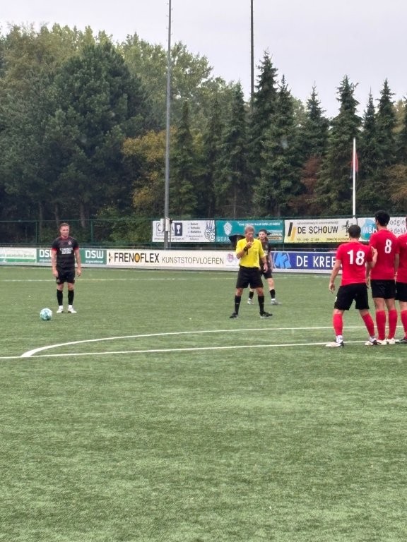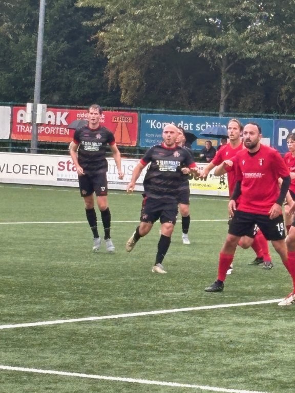 Opmerkelijk was verder het optreden van scheidsrechter Izaak Roeland uit Sleeuwijk. Hij is 71 jaar en geeft af en toe wel eens een onterechte vrije trap of juist niet, maar kan het tempo goed bijbenen en dwingt respect af.