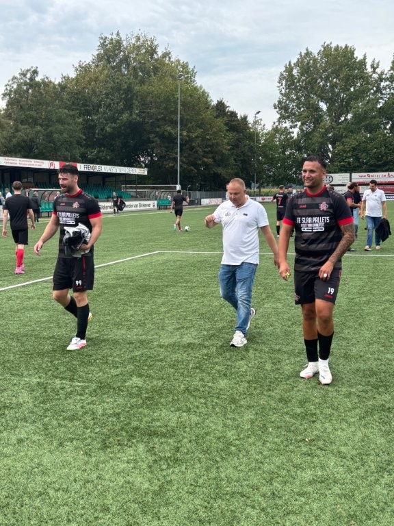 Pas toen het droog werd, vielen de doelpunten met een echte spitsengoal van Noël Goossens na een prachtige assist van Mike, die zelf de 0-2 over Joris van Vugt kopte, terwijl iedereen dacht aan een eigen doelpunt, “maar ik raakte hem het laatst”. De 0-3 was van Dirk Kusters na goed voorbereidend werk van Casper Westera. En daarmee was het oud Oranje Wit gehalte hoog, met ook nog eens een betrouwbaar centrum van Noah Wijne en Jordi Fok.