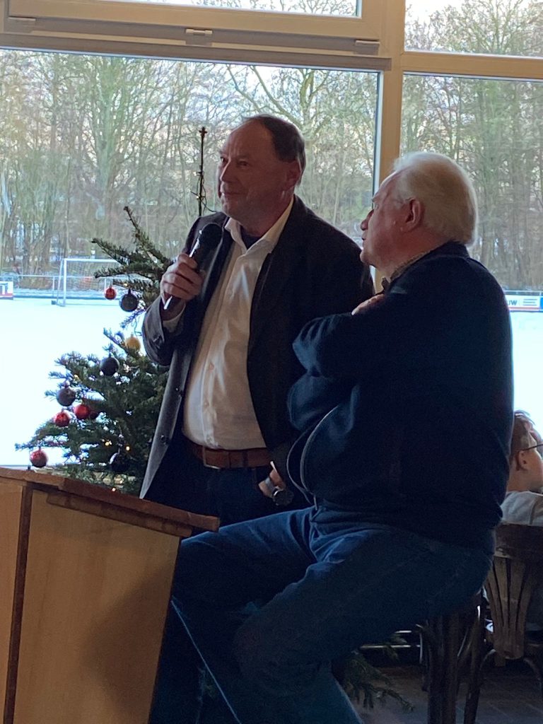 Fred van Wingerden is eveneens 50 jaar lid. Vorig jaar kreeg hij voor zijn inspanningen voor de club al het predicaat ‘Lid van Verdienste’. Hij kwam over van SC Emma en speelde bij EBOH in de A-regionaal. Aangespoord door Hans Schoon vertelde hij over het jaar waarin hij met die ploeg slechts één punt wist te sprokkelen. “Maar het was wel een gezellig elftal”, aldus Fred met een lach. Hij voetbalde in het eerste elftal met o.a. EBOH-legende Hans van Genderen. Tegenwoordig is hij de kartrekker van de Club van 100, en zit hij in de reünistencommissie.