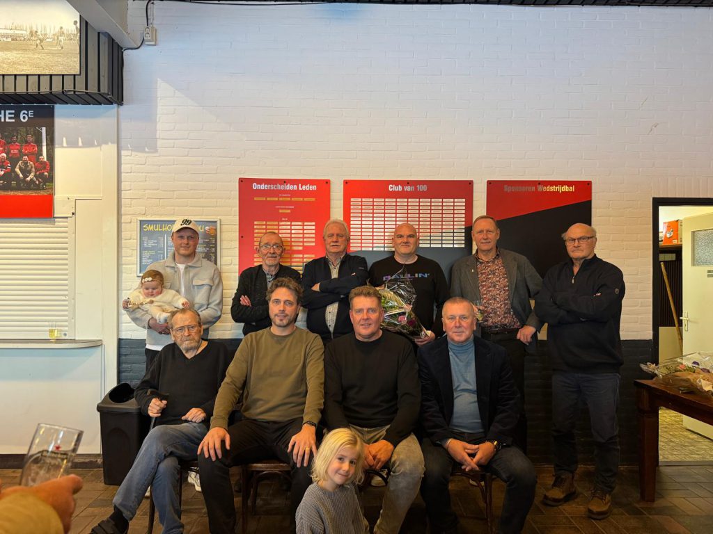 Ter afsluiting had het bestuur nog een verrassing in petto. De borden met daarop de leden met een onderscheiding en de leden van de Club van 100 werden gepresenteerd. Ook is er een bord met toekomstige wedstrijdbalsponsoren. De jubilarissen van de middag poseerde trots voor de nieuwe borden.